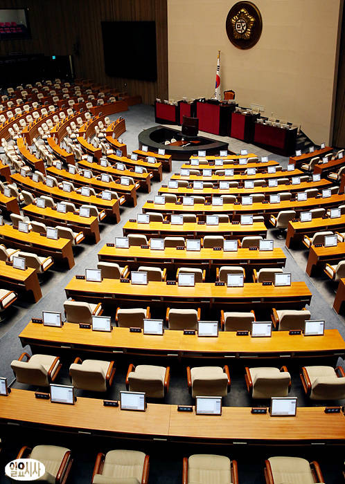 여야가 21일 오후, 정부조직법 개정안 등 관련 법안들을 통과시킬 예정이었지만 합의문에 대한 해석차를 좁히지 못해 난항을 겪고 있는 가운데, 국회 본회의장 안이 텅텅 비어 있다.