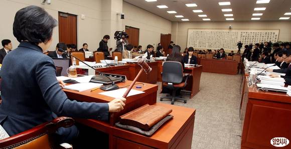 22일 오전 서울 여의도 국회 법제사법위원회 전체회의에서 박영선 위원장이 정부조직법 개편 관련 법안 통과를 알리는 의사봉을 두드리고 있다.