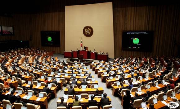 22일 오후 서울 여의도 국회 본회의장에서 의원들이 정부조직법 전부개정안을 통과시키고 있다.