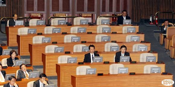22일 오후 서울 여의도 국회에서 열린 본회의에서 서남수 교육과학기술부 장관과 윤병세 외교통상부 장관이 참석해 자리에 앉아 있다.
