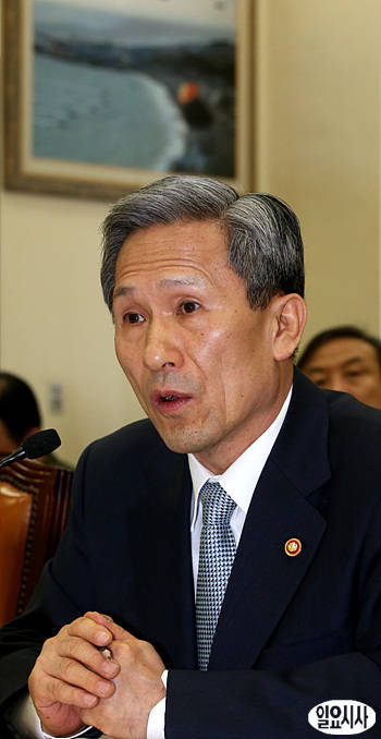 김관진 국방부 장관이 22일 오전 열린 국회 국방위원회 전체회의에 참석해 의원들의 질의에 답변하고 있다.