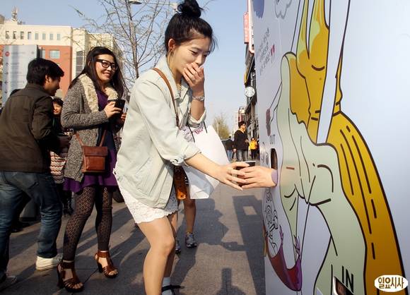 [포토] 자판기 속에 사람이 '신가하네~'