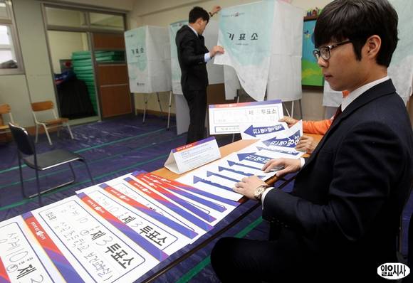 [포토] 4·24 재보궐 선거 투표소 설치하는 선관위 관계자들