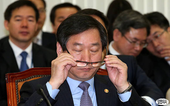 유정복 안전행정부 장관이 23일 오후 여당 의원들이 불참한 가운데 열린 국회 안전행정위원회 전체회의에서 피곤한 표정으로 안경을 벗고 있다.