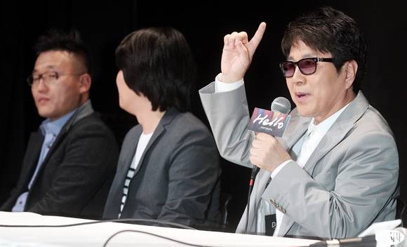 '가왕' 조용필이 23일 오후 서울 방이동 올림픽공원 내 올림픽홀에서 19집 정규 앨범 '헬로(Hello)' 발매 기념 '프리미어 쇼케이스-헬로!'를 개최하기에 앞서 열린 공식 기자회견에서 취재진의 질문에 답하고 있다.