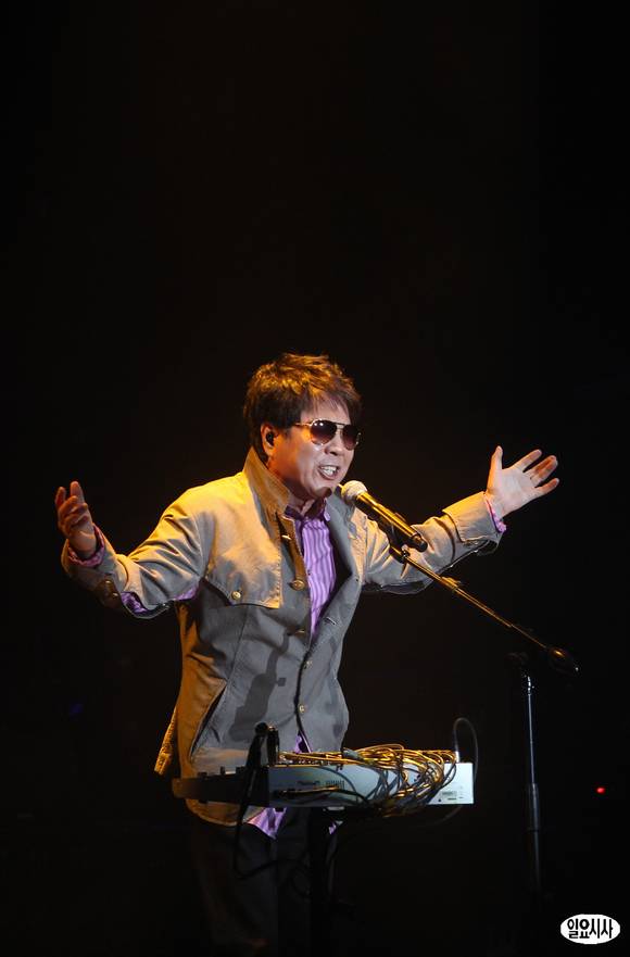 '가왕' 조용필이 23일 오후 서울 방이동 올림픽공원 내 올림픽홀에서 열린 19집 정규 앨범 '헬로(Hello)' 발매 기념 '프리미어 쇼케이스-헬로!'에서 열창을 하고 있다.