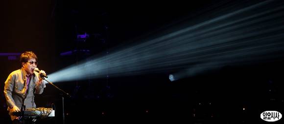 '가왕' 조용필이 23일 오후 서울 방이동 올림픽공원 내 올림픽홀에서 열린 19집 정규 앨범 '헬로(Hello)' 발매 기념 '프리미어 쇼케이스-헬로!'에서 열창을 하고 있다.
