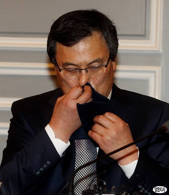 최문기 미래창조과학부 장관이 24일 오후 서울 여의도 렉싱턴 호텔에서 창업 및 벤처 활성화를 위해 열린 '창조경제 금융관련기관 정책간담회'에서 코를 만지고 있다.
