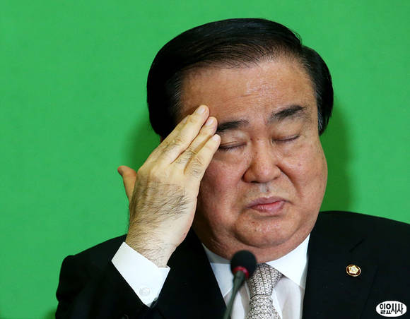 문희상 민주통합당 비상대책위원장이 24일, 서울 여의도 국회에서 열린 비상대책위원회의서 피곤한 듯 이마를 쓰다듬고 있다.