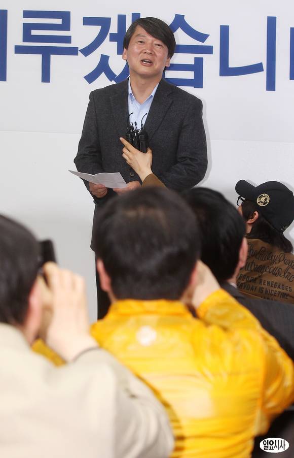 4.24 재보궐 선거에서 서울 노원병 국회의원에 당선된 안철수 의원이 25일 오후 서울 상계동에 위치한 선거사무실에서 열린 캠프 해단식에서 소감을 밝히고 있다.