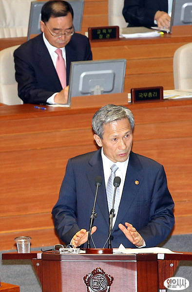 김관진 국방장관이 25일 국회 본회의에서 열린 정치·외교·통일·안보 분야 대정부질문에서 의원들의 질의에 답변하고 있다.
