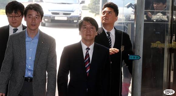 4·24 재보선 서울 노원병 국회의원에 당선된 무소속 안철수 의원이 송호창 의원과 함께 26일 오전 서울 여의도 국회로 들어서고 있다.