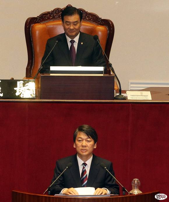 4·24 재보선 서울 노원병 국회의원에 당선된 무소속 안철수 의원이 26일 오전 서울 여의도 국회에서 열린 본회의에서 의원선서를 마친 뒤 인사말을 하고 있다.