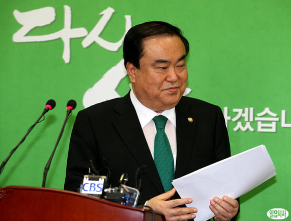 문희상 민주통합당 비상대책위원장이 29일 오전 국회에서 폐쇄위기에 직면한 개성공단 사태와 관련해 기자회견을 갖고 박근혜 대통령에게 영수회담을 제안하고 있다.