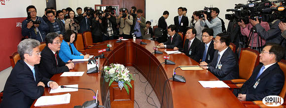 이한구 새누리당 원내대표와 경제5단체장 부회장단이 29일 오전 국회 새누리당 원내대표실에서 면담을 갖고 있다.