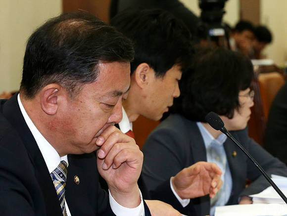공휴일과 일요일이 겹치면 평일에 하루 더 쉬도록 하는 대체휴일제의 4월 임시국회 처리가 여야정 이견으로 무산 위기에 놓인 가운데 29일 오전 서울 여의도 국회에서 열린 안전행정위원회 전체회의에서 민주통합당 이찬열 의원이 생각에 잠겨 있다.