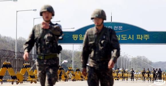 정부의 개성공단 체류인원 전원 귀환조치에 따라 우리 측 인력 50명이 모두 돌아오기로 예정된 29일 경기 파주 통일대교에 군 병력이 검문 검색을 강화하고 있다.