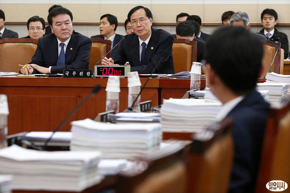 30일 오후 국회 법제사법위원회에 참석한 노대래 공정거래위원장(사진 가운데)이 의원들의 질의에 답변하고 있다.