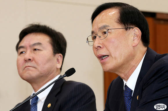 30일 오후 국회 법제사법위원회에 참석한 노대래 공정거래위원장(사진 오른쪽)이 의원들의 질의에 답변하고 있다.
