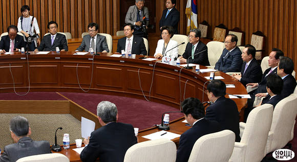 새누리당 황우여 대표, 이한구 원내대표, 서병수 사무총장, 정우택·이혜훈 최고위원 등이 1일 오전, 국회에서 열린 최고중진연석회의에 참석해 있다.