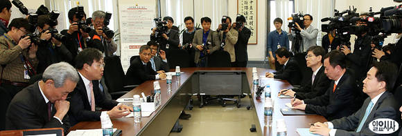 새누리당 의원들과 김남식 통일부 차관 등 정부 관계자들이 1일 오전 국회에서 개성공단 입주기업 지원TF 당정 회의에서 새누리당 의원들의 모두발언을 경청하고 있다.