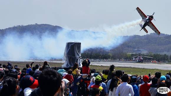 1일 경기 안산 사동에서 개막된 '2013 경기안산항공전'에서 스페인에서 온 캐스토 판토바팀이 곡예비행을 펼치고 있다.