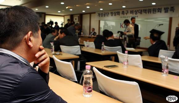 3일 오후 서울 여의도 중소기업중앙회에서 개성공단기업협회 긴급 임시총회가 열리고 있다. 이날 개성공단기업협회는 개성공단 조업 중단과 근무자 철수에 따른 후속 대책을 마련하기 위해 `개성공단 정상화 촉구 비상대책위원회'를 발족했다.