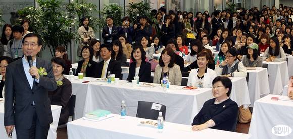 박원순 서울시장이 3일 오후 서울 서대문구 이화여자대학교에서 열린 '2013 서울시 여대생 일자리박람회'에서 특강을 하고 있다.