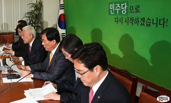 김한길 민주당 대표와 박기춘 원내대표, 신경민·양승조·우원식 등 최고위원들이 6일 오전 서울 여의도 국회 민주당대표실에서 열린 최고위원회의를 진행하고 있다.