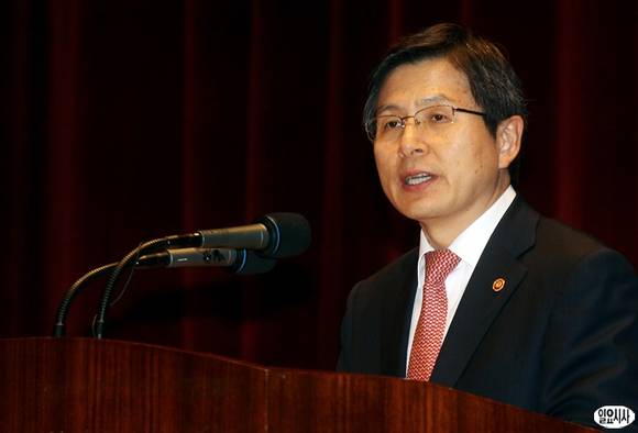 6일 오후 정부과천청사에서 열린 신임검사 임관식에서 황교안 법무부 장관이 축사를 하고 있다.