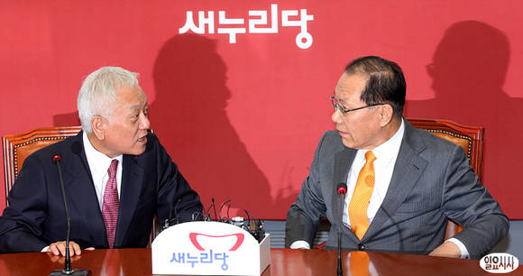 황우여 새누리당 대표(사진 오른쪽)가 6일 오후 국회 당대표실에서 김한길 민주당 신임 대표와의 회동에서 진지한 표정으로 대화를 나누고 있다.