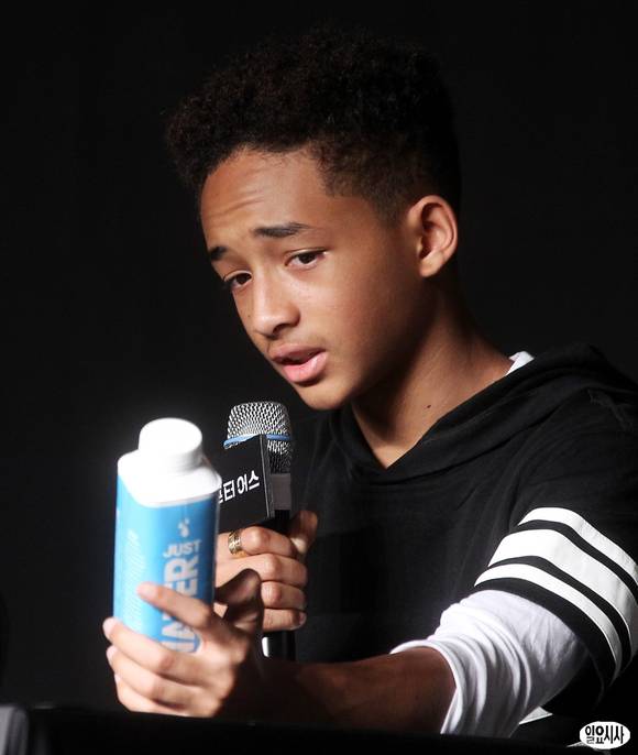 7일 오전 서울 여의도 콘래드 호텔에서 열린 영화 '애프터 어스' 내한 기자회견에서 배우제이든 스미스가 자신의 개인물병에 대해 설명을 하고 있다.일요시사=송의주 기자(songuiju@ilyosisa.co.kr)