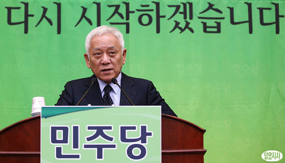 김한길 민주당 대표와 박기춘 원내대표가 7일 오전, 국회에서 열린 의원총회에서 모두발언하고 있다.일요시사=나경식 기자(rusia1973@ilyosisa.co.kr)