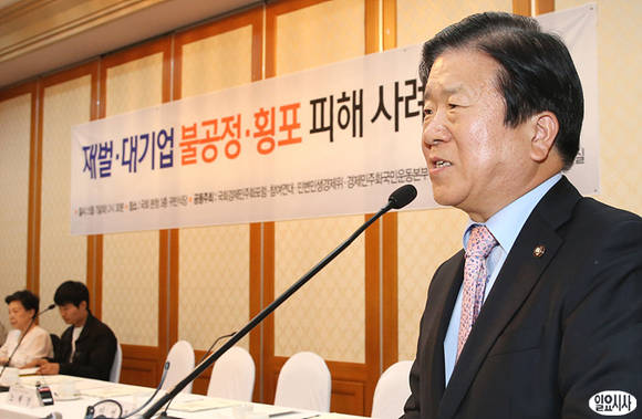 7일 오후 서울 여의도 국회 귀빈식당에서 경제민주화포럼, 참여연대, 민변 공동 주최로 열린 '재벌·대기업 불공정·횡포 피해 사례 발표회'에서 박병석 국회 부의장이 인사말을 하고 있다.일요시사=나경식 기자(rusia1973@ilyosisa.co.kr)