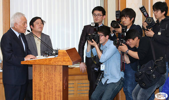 7일 오후 서울 여의도 국회 귀빈식당에서 경제민주화포럼, 참여연대, 민변 공동 주최로 열린 '재벌·대기업 불공정·횡포 피해 사례 발표회'에서 민주당 김한길 대표가 인사말을 하고 있다.일요시사=나경식 기자(rusia1973@ilyosisa.co.kr)