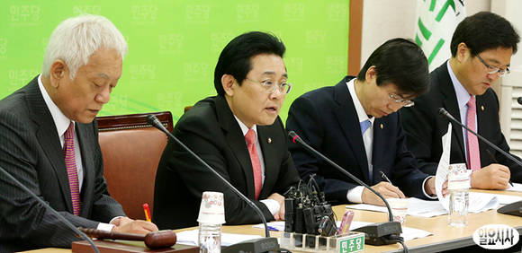 전병헌 민주당 원내대표가 22일 서울 영등포구 중앙당사 회의실에서 열린 최고위원회의에서 모두발언하고 있다.