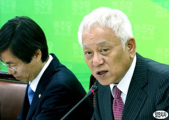 김한길 민주당 대표가 22일 서울 영등포구 중앙당사 회의실에서 열린 노대래 공정거래위원장과의 면담에서 발언하고 있다.