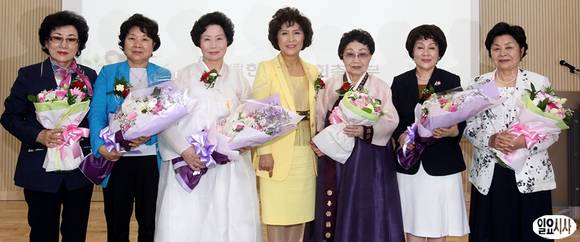 22일 서울 종로구 신교동 푸르메센터에서 열린 '2013 훌륭한 어머니상 시상식'에서 조태임 한국부인회총본부 회장(가운데)이 시상자들과 기념촬영을 하고 있다.