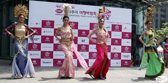 23일 오후 서울 청계광장에서 열린 '2013 하나투어 여행박람회' 개막기념 공연에서 태국 3대 쇼의 하나인 '아프로디테쇼' 현지 무용단원들이 화려한 춤을 선보이고 있다.