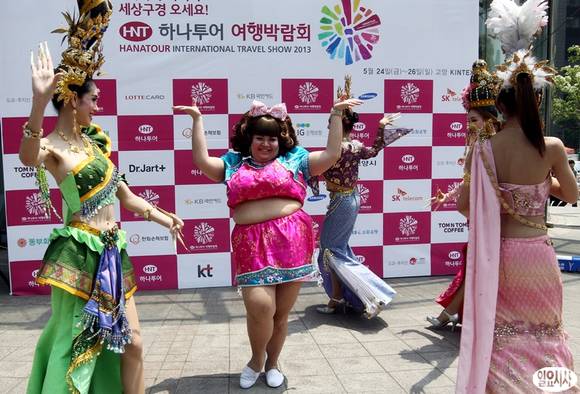 23일 오후 서울 청계광장에서 열린 '2013 하나투어 여행박람회' 개막기념 공연에서 태국 3대 쇼의 하나인 '아프로디테쇼' 현지 무용단원들이 화려한 춤을 선보이고 있다.