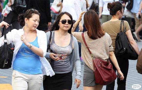 때이른 무더위가 계속된 24일 오후 서울 명동거리에 시민들이 더위를 피해 걸음을 재촉하고 있다.