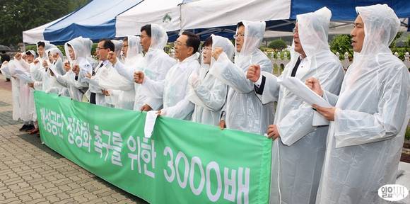 27일 오전 서울 여의도 국회 정문 앞에서 김성곤 민주당 의원을 비롯한 민주당 의원들과 종교인 등이 참석, '개성공단 정상화 촉구를 위한 3000배'를 앞두고 기자회견을 갖고 있다.