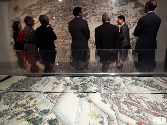 27일 오후 서울 안암동 고려대 100주년 기념관을 찾은 주한외국대사들이 국보 제249호인 동궐도(東闕圖)에 대해 설명을 듣고 있다.