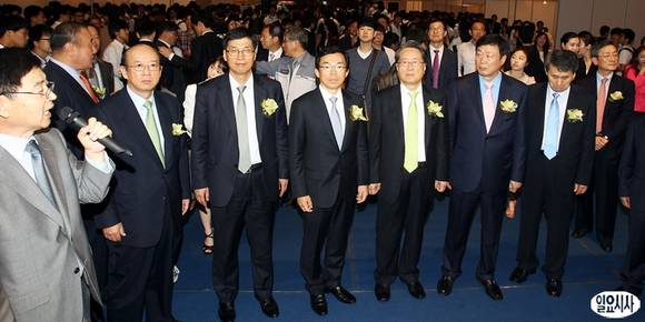 28일 오전 서울 강남구 삼성동 코엑스에서 열린 '삼성 협력사 채용 한마당'에서 (오른쪽 두번째부터)강호문 삼성전자 부회장, 유장희 동반성장위원회 위원장, 이승철 전경련 상근부회장을 비롯한 참석자들이 업체 부스들을 살펴보고 있다.