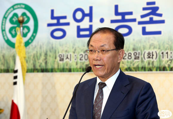황우여 새누리당 대표가 28일 오전, 국회에서 열린 '농업ㆍ농촌 지속가능성장 위한 미래전략 세미나'(주최 손인춘 의원)에서 축사하고 있다.