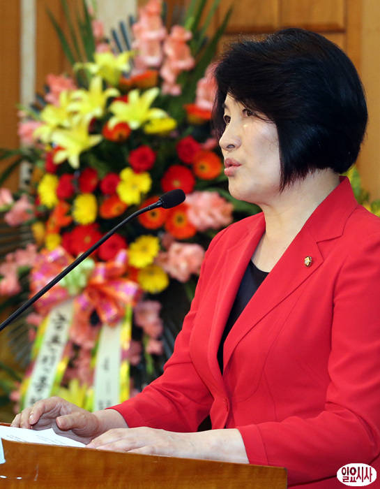 손인춘 새누리당 의원(사진)이 28일 오전 국회에서 열린 '농업ㆍ농촌 지속가능성장 위한 미래전략 세미나'에서 환영사를 하고 있다.