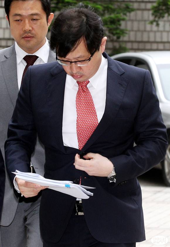 횡령과 배임 혐의 등으로 기소된 최재원 SK그룹 수석부회장이 29일 오후 서울 서초동 서울고등법원에서 열린 항소심 5차 공판에 출석하기 위해 청사로 들어서고 있다.