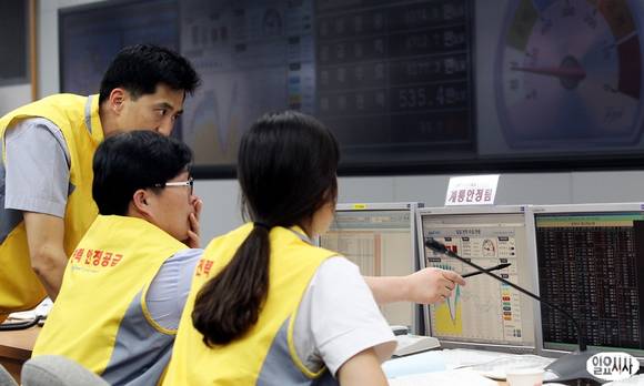 신고리 원전과 신월성 원전의 위조부품 설치로 인한 일부 원자력 가동이 중단되면서 전력난이 우려되는 30일 서울 강남구 삼성동 한국전력거래소 상황실에 긴장감이 감돌고 있다.