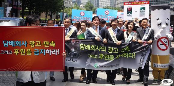 세계 금연의 날인 31일 서울 청계광장에서 한국금연운동협의회가 범국민 금연운동추진단 발족식을 갖고 담배값 인상 및 강력한 담배규제 정책 추진을 촉구하는 구호를 외치며 가두행진을 벌이고 있다.