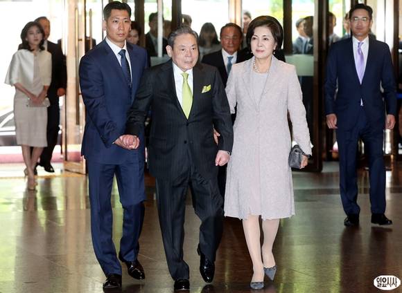 이건희 삼성전자 회장과 부인 홍라희 여사가 31일 오후 서울 중구 호암아트홀에서 열린 제23회 호암상 시상식에 참석하고 있다.